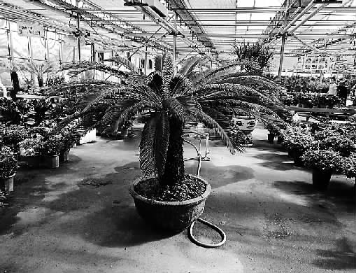 这株开花的铁树是该植物园2010年购入的,在温室环境中被当做盆景培养。养护人员从培土、浇水、施肥、修剪等方面都非常用心。今年4月初,在这株铁树中央突然冒出一个拳头大小的包,十几天后便长成了眼前如玉米一样的黄色雄花。工作人员十分惊喜,铁树开花的消息不胫而走,引得很多市民前来观赏。