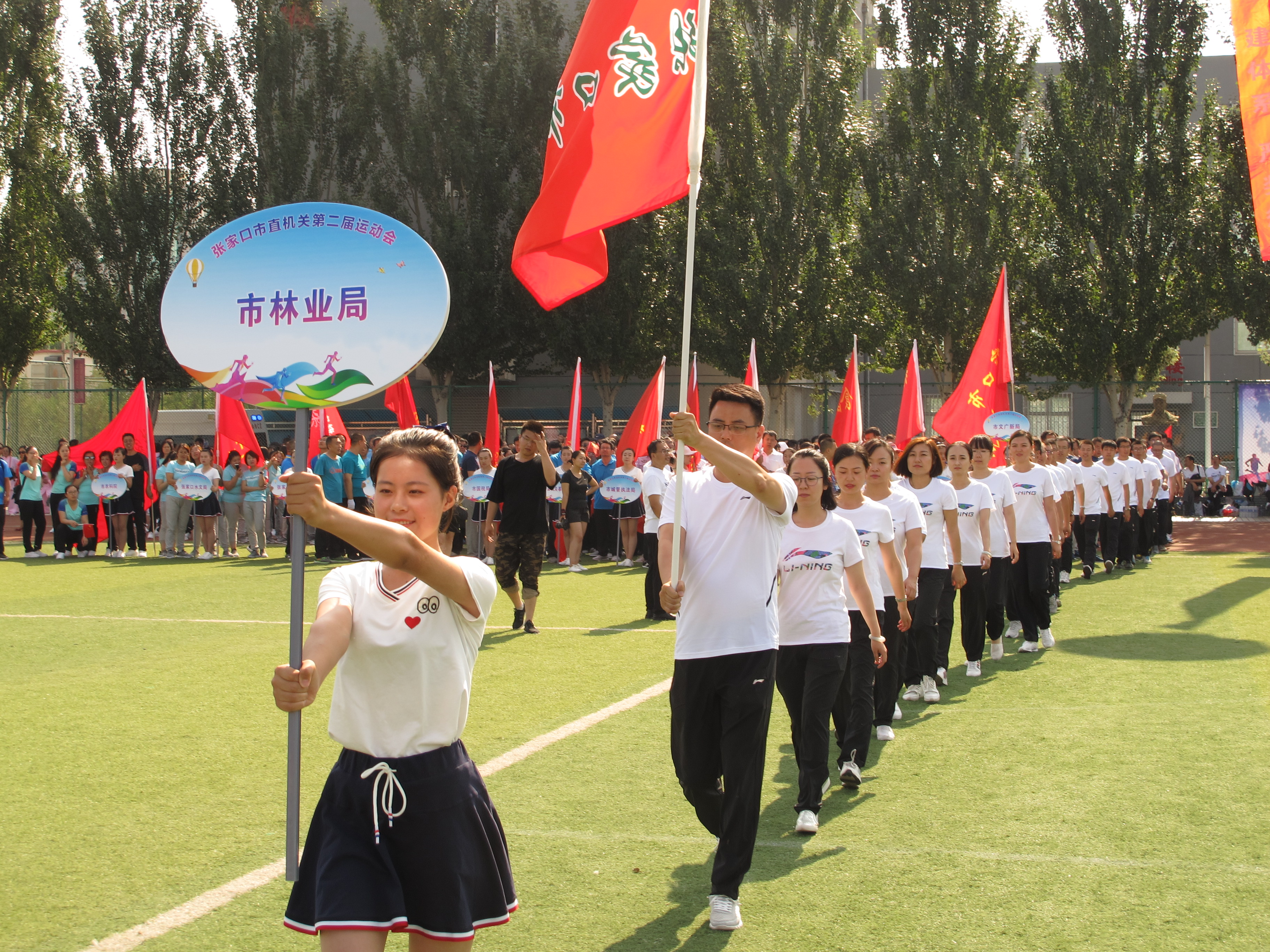 6月27日上午,张家口市直机关第二届运动会在机械工业学校操场举行开幕仪式。张家口市林业局副局长高斌带领30多名干部职工精神抖擞的迈入主会场,接受大会的检阅,展现林业人的风采。