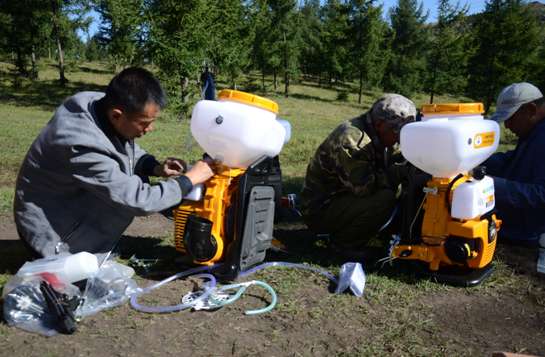 为有效预防和控制落叶松叶峰的发生危害,2017年9月3日—9日,沽源县林业局对长梁乡南滩村落叶松林区松叶峰开展了喷雾防治作业。作业使用背负式汽油喷雾机10台,用苦参碱1:1000倍液进行喷雾,主要对林区内落叶松幼树和树势较弱的老树进行了防治,防治面积共计2300余亩,防治效果良好。